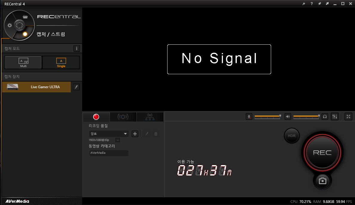 에버미디어 공홈에 가시면 에버미디어 회사 제품의 소프트웨어인 RECentral을 설치할 수 있습니다. 이를 이용해 캡처나 스크린샷을 찍을 수 있습니다.