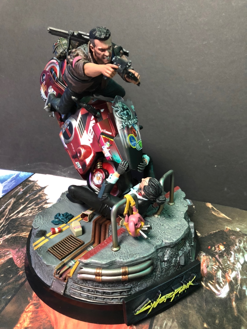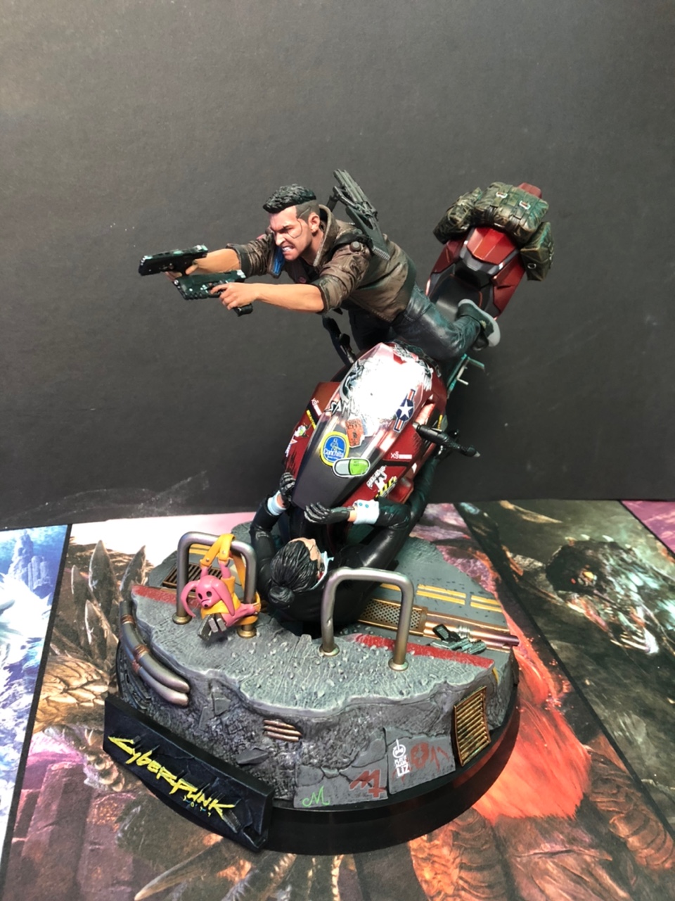 V가 오토바이를 타고 적을 쓰러트리는 동시에 총으로 적을 저격하는 모습의 액션 피규어입니다. 잘 보면 오토바이에 눌려있는 모습을 디테일하게 묘사하였는 등 디테일적으로 뛰어난 피규어였습니다. 오토바이 또한 섬세하게 잘 만들어서 만족스러웠습니다.