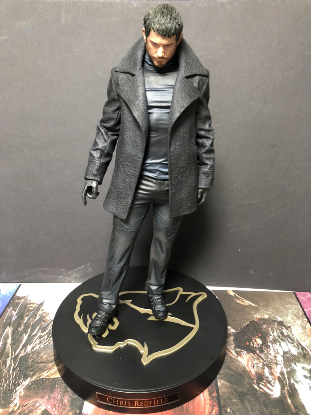 피규어를 부착하면 이런 모습입니다. 피규어 자체의 퀄리티는 나쁘지 않았습니다. 옷 재질이나 주름 표현 등은 너무 좋았습니다. 그리고 총을 장착한 모습은 크리스의 카리스마 적인 모습을 더하여서 좋았습니다.