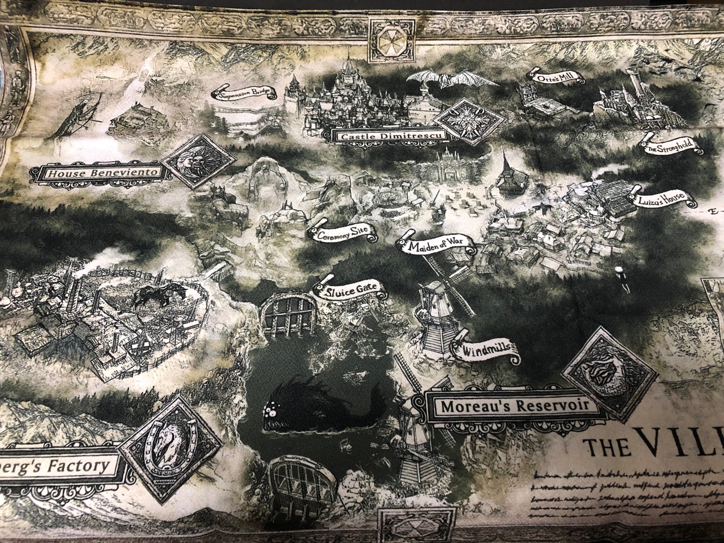 리버서블 패브릭 포스터를 보면 앞에는 바하 빌리지의 대표 문양이 박혀있고 뒷면에는 게임의 지도가 그려져 있습니다.